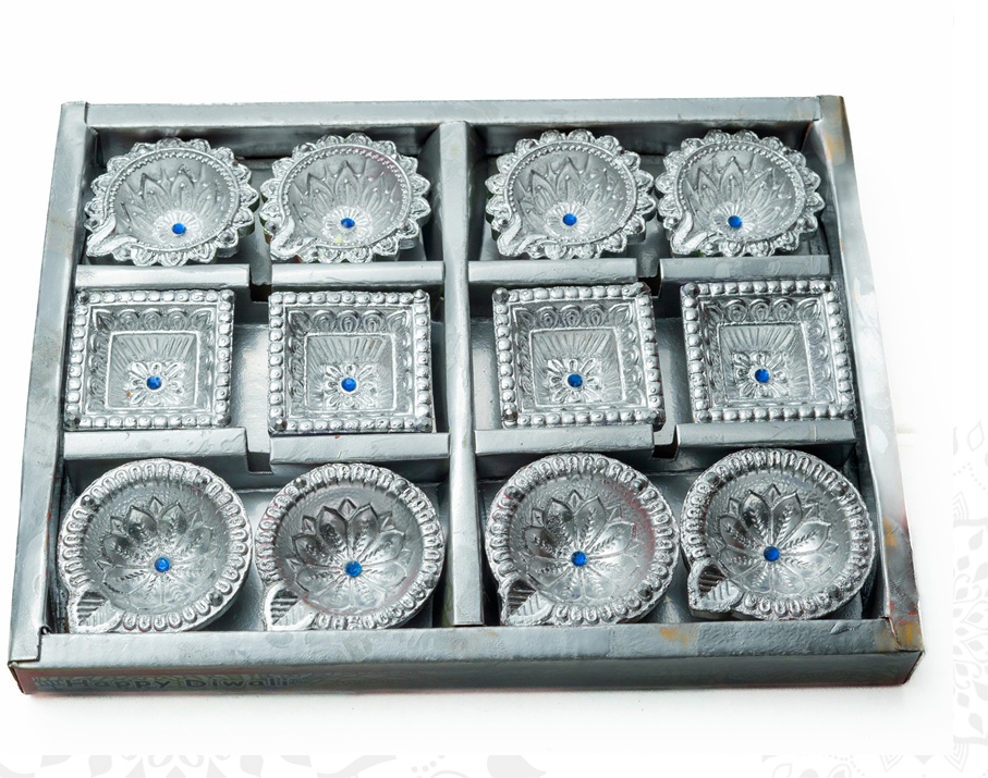 SILVER FANCY DIYA 2.5 INCH 12 PCS FD-56